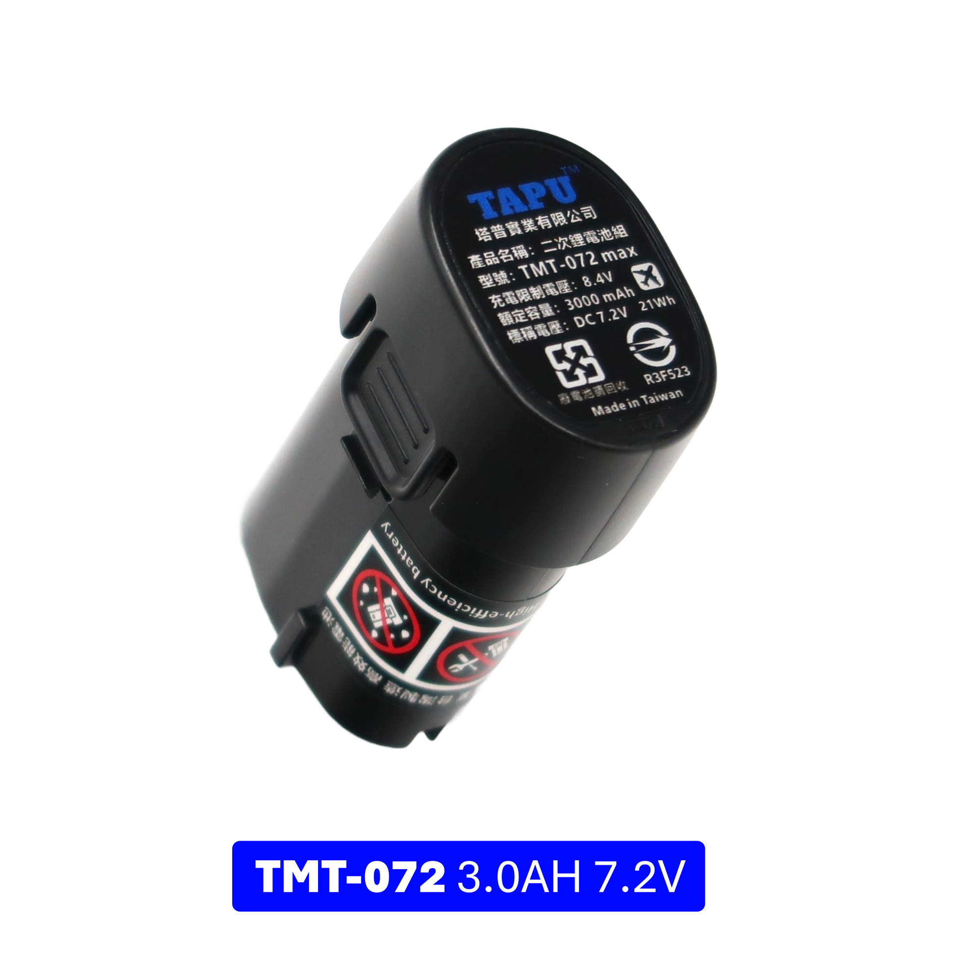 TAPU推出的TMT-072 3.0Ah鋰電池,專為MT系列7.2V電動工具設計。首先於常見的1.5Ah容量,我們將容量提升至3.0Ah,為您帶來加倍的電力輸出和更長的供電時間,讓工作不中斷。